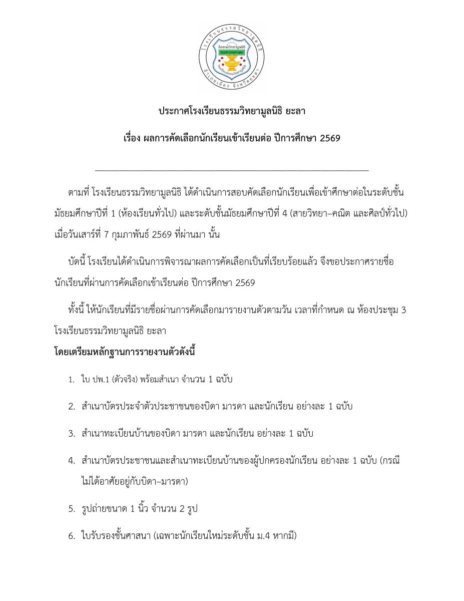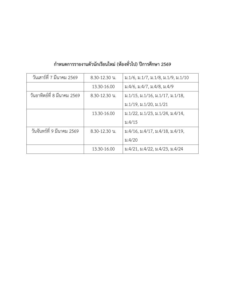 Home / ข่าวสารโรงเรียน / ข่าวประชาสัมพันธ์ / ประกาศรายชื่อผู้ผ่านการคัดเลือกนักเรียนใหม่ห้องทั่วไป 2569
