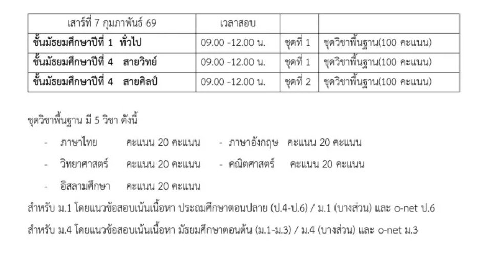 วันสอบ วันเสาร์ที่ 7 กุมภาพันธ์ 2569