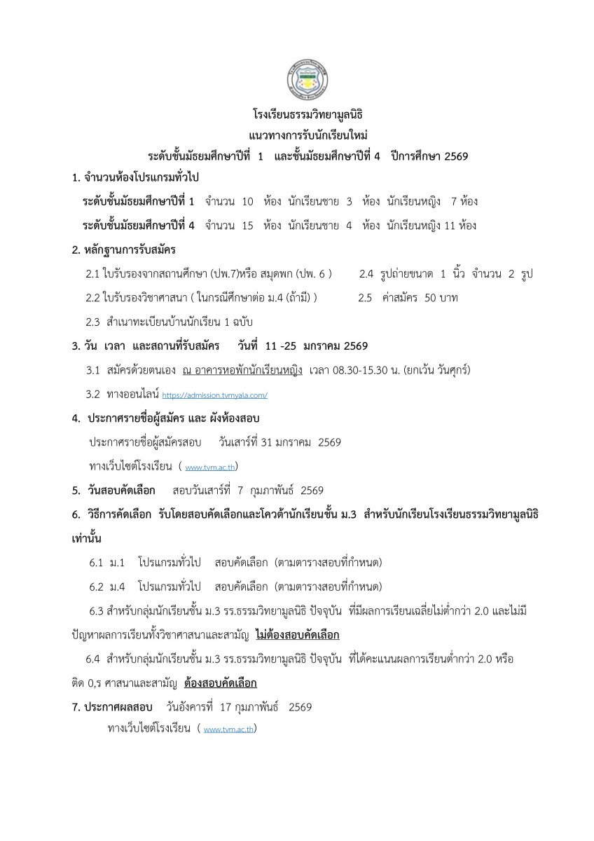 Home / ข่าวสารโรงเรียน / ข่าวกิจกรรมโรงเรียน / รับสมัครนักเรียนใหม่ ห้องทั่วไป ปีการศึกษา 2569